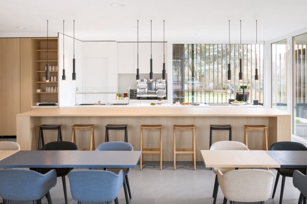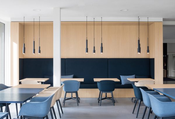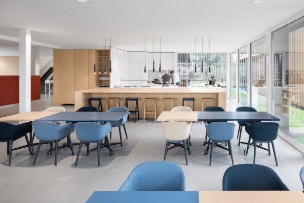We hebben gekozen voor een open indeling met daarin de receptie, lobby, vergaderruimtes, werkplekken en het bedrijfsrestaurant. Het is zowel gastvrij als discreet.